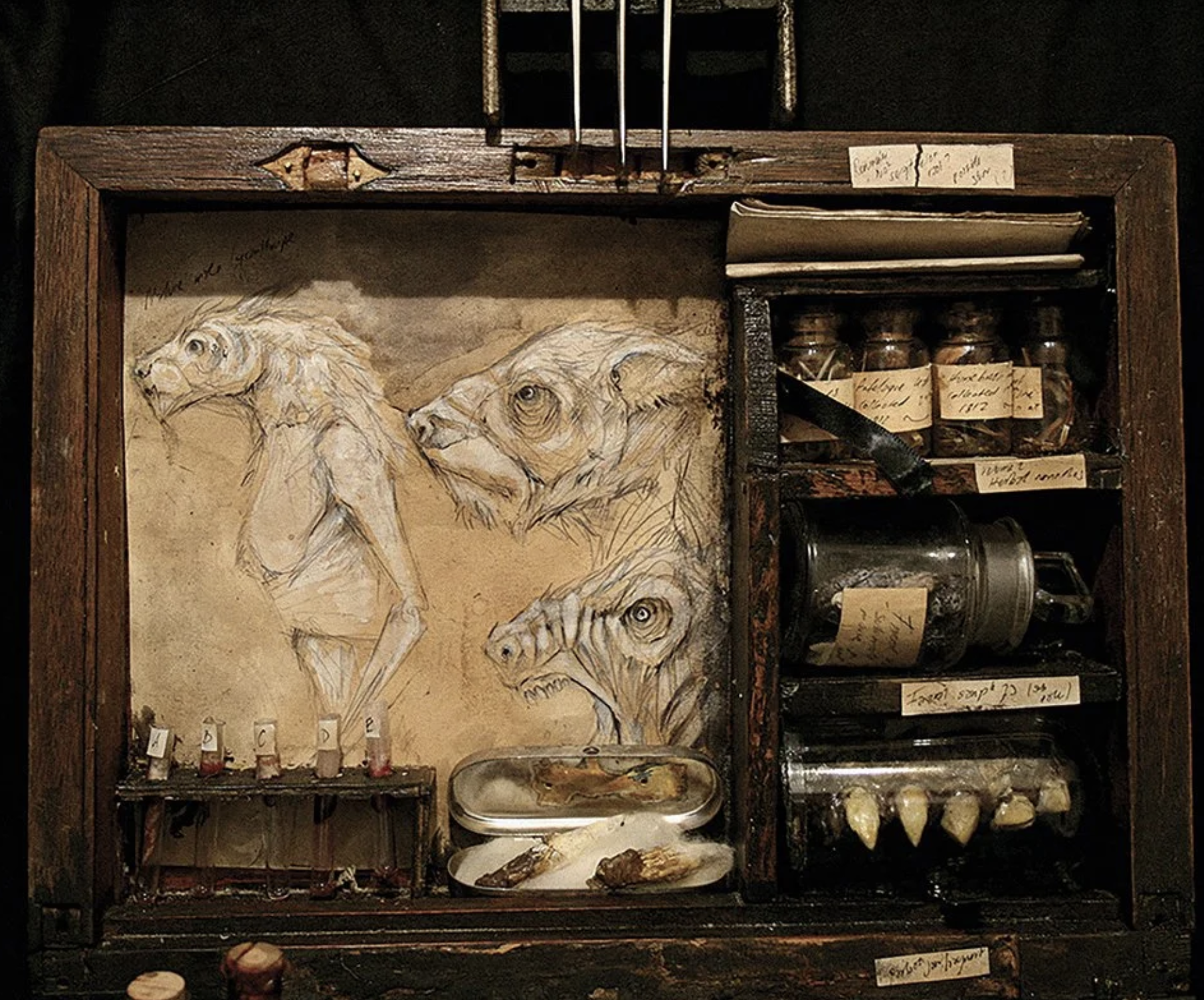 Below are series of taxidermied examples, and research receptacles, mostly the work of Paloe anthropologist Edward Harrell. Amongst these examples include infected humans whio died due to the complications of physiological changes,