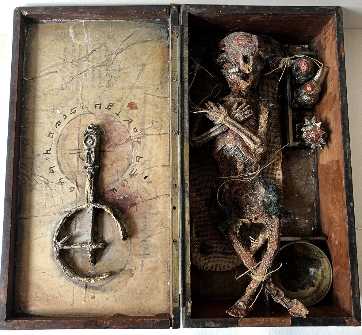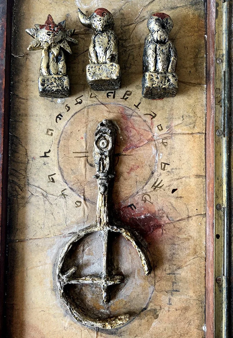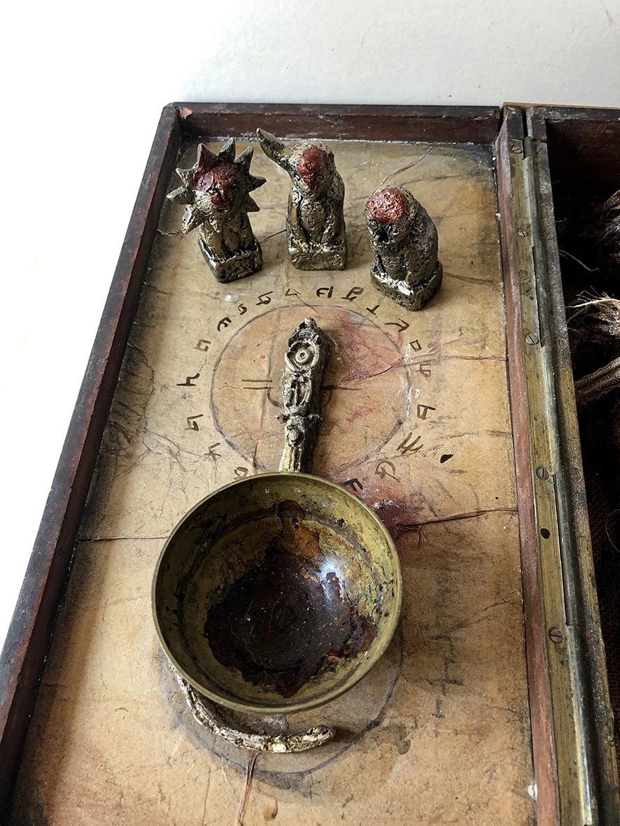 The late 19th century saw a steep rise in the number of active groups, which he would infiltrate and observe. He found that, in most cases, no true acts of weaving were performed during the gatherings of ram-headed priests, naked sacrificial victims and black-robed miscreants touting gibberish into the ether. He was almost disappointed at the many altars he would stand before, monitoring the words uttered, the potions consumed, and the gods to which they prayed. It was almost always nonsense. The odd phrase would tease at inclinations, stirrings in the fabric of reality, but almost always misspoken, misunderstood. Yet, thought-forms were bought into being, abhorrent manifestations of their darkest desires. Below are. various examples of these, and the tools of practice in occult acts.